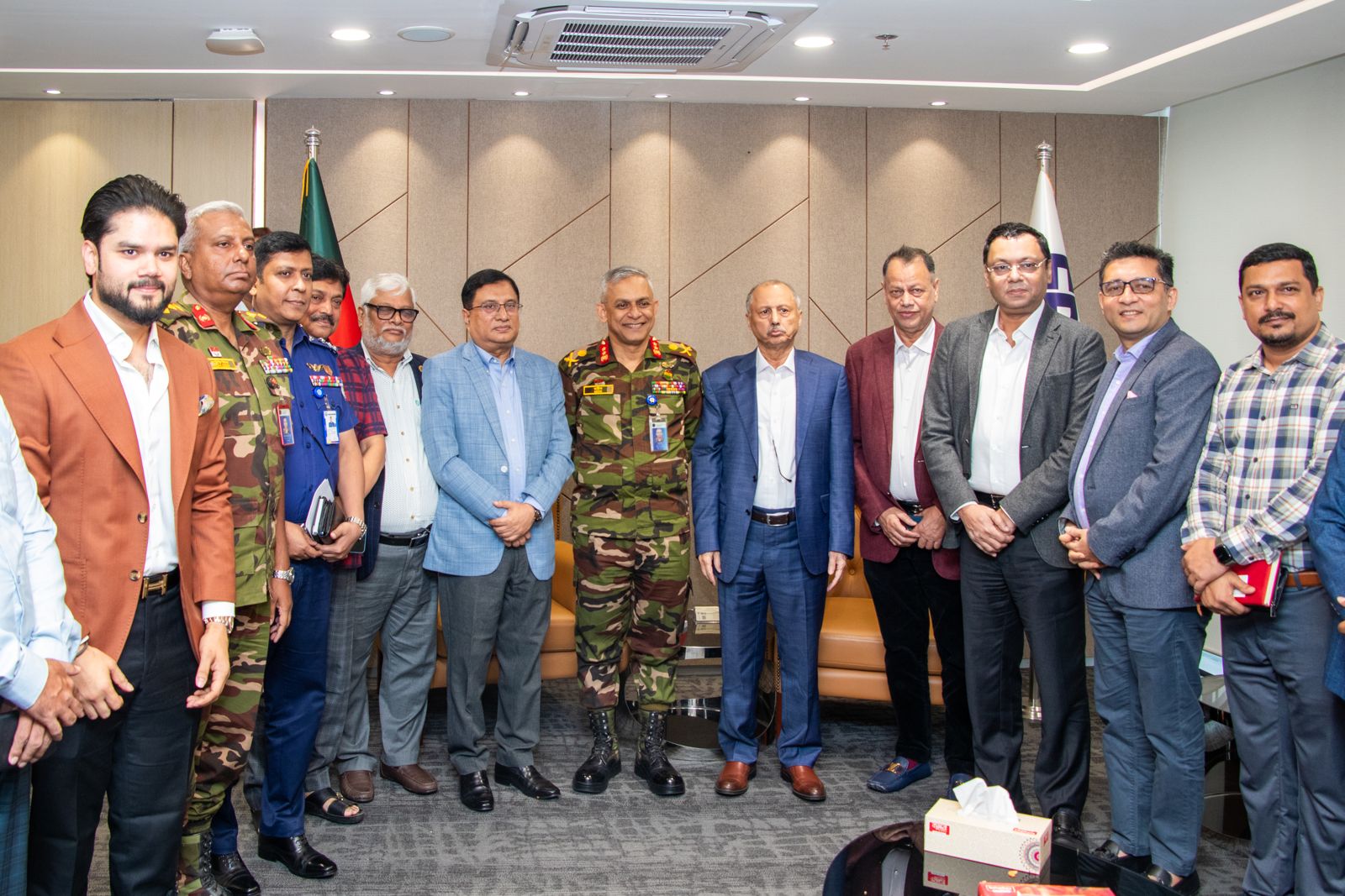 এফবিসিসিআই সভাপতি চলমান পরিস্থিতিতে দেশের শিল্প কারখানা ও ব্যবসা প্রতিষ্ঠানের নিরাপত্তা জোরদারে আইন শৃঙ্খলা রক্ষাকারী বাহিনীর সহযোগিতা চেয়ে বক্তব্য প্রদান করেন। সভায় বিটিএমএ’র প্রেসিডেন্ট জনাব শওকত আজিজ রাসেল বলেন, ব্যাংক ছাড়া আমরা ব্যবসায়ীরা ব্যবসা পরিচালনা পারিনা। তাই ব্যাংকিং সেক্টরে যে সকল চুরি/ডাকাতি হচ্ছে সেগুলো চিহ্নিত করে এসব দূর্নীতির বিরুদ্ধে প্রয়োজনীয় ব্যবস্থা নিতে জিওসি মেজর জেনারেল মোঃ মঈন খানকে অনুরোধ জানান। এছাড়া অন্যান্য ব্যবসায়িক নেতৃবৃন্দ ও ষ্টেক হোল্ডারের প্রতিনিধিবৃন্দ সরকারের বিভিন্ন সেক্টরের অনিয়ম, কাস্টমস এর দূর্নীতি এবং শিল্প ও ব্যবসায়িক প্রতিষ্ঠানে বিভিন্ন দূষ্কৃতিকারীদের হামলা-ভাংচুর, অগ্নীসংযোগ, হত্যা বিভিন্ন বিষয় জিওসিকে অবহিত করেন।