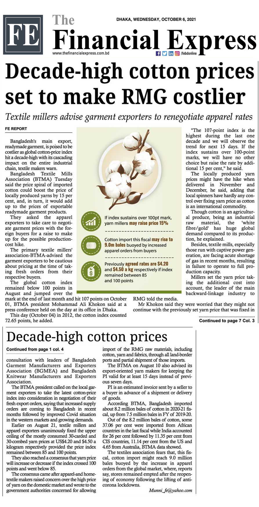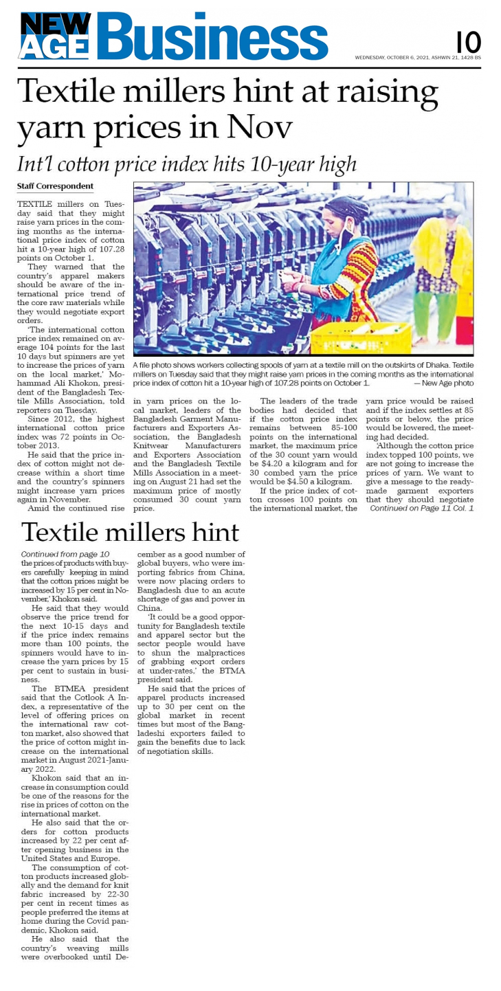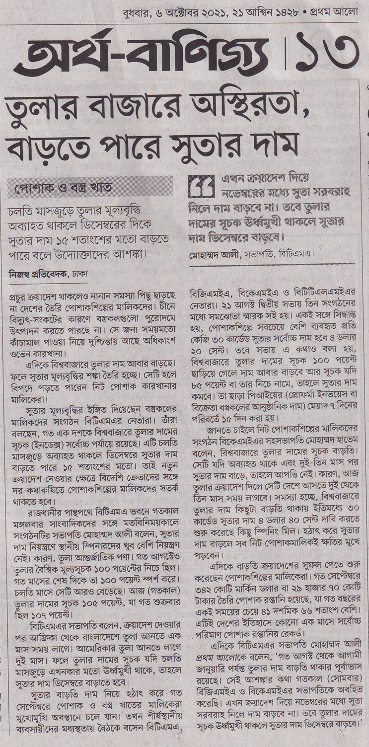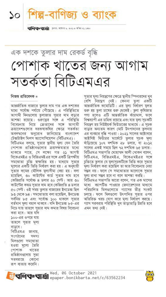 October 6, 2021 Md. Azizul Haque (Rasel) Article, BTMA Live Network Comments are off ( পেপার কাটিং_ ৬ই অক্টোবর ২০২১ ইং) The Daily Ittefaq The Daily Samakal Bonik Barta The Daily Prothom Alo The Daily Star New Age The Financial Express The Business Standard Share this: Share on X (Opens in new window) X Share on Facebook (Opens in new window) Facebook