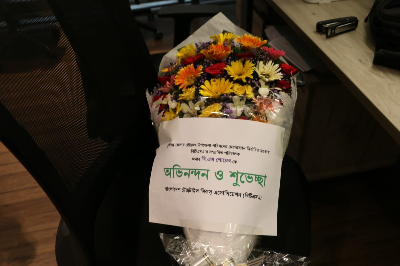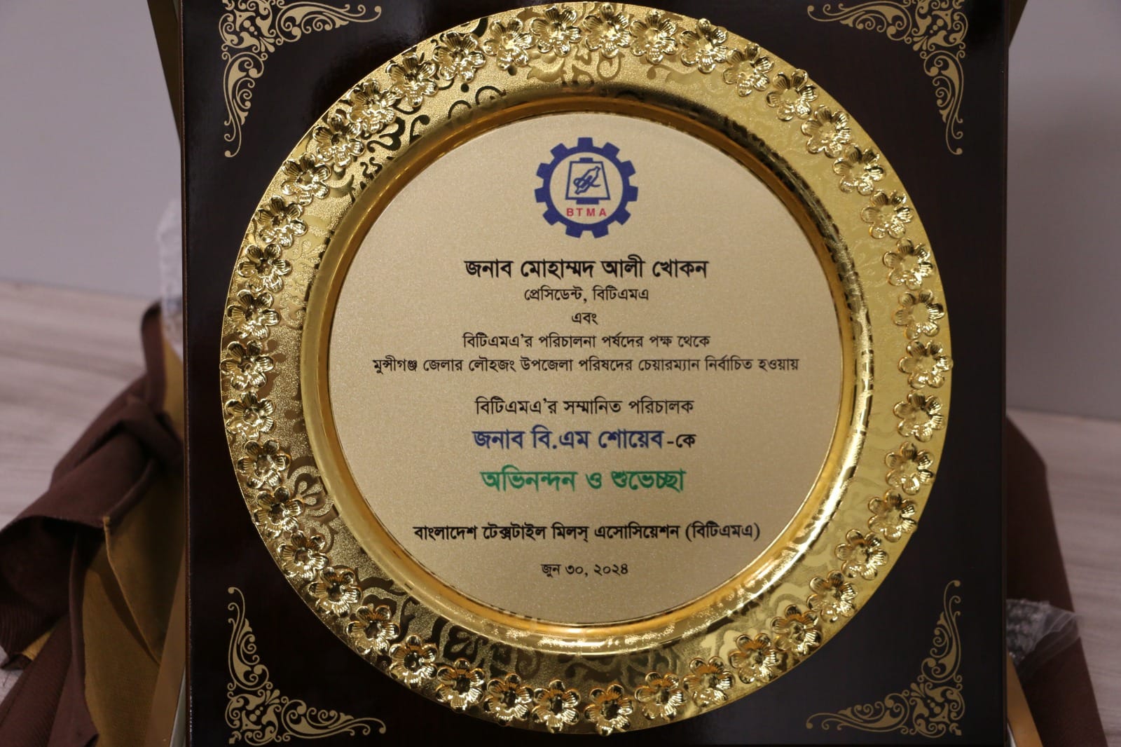 অদ্য ৩০ জুন ২০২৪ তারিখ বিটিএমএ’র পরিচালনা পর্ষদের পক্ষ থেকে মুন্সীগঞ্জ জেলার লৌহজং উপজেলা পরিষদের চেয়ারম্যান নির্বাচিত হওয়ায় বিটিএমএ’র সম্মানিত পরিচালক জনাব বি.এম শোয়েব-কে অভিনন্দন ও ফুলেল শুভেচ্ছা জানানো হয়। এছাড়াও জনাব শোয়েবকে ক্রেস্ট প্রদান করা হয়।