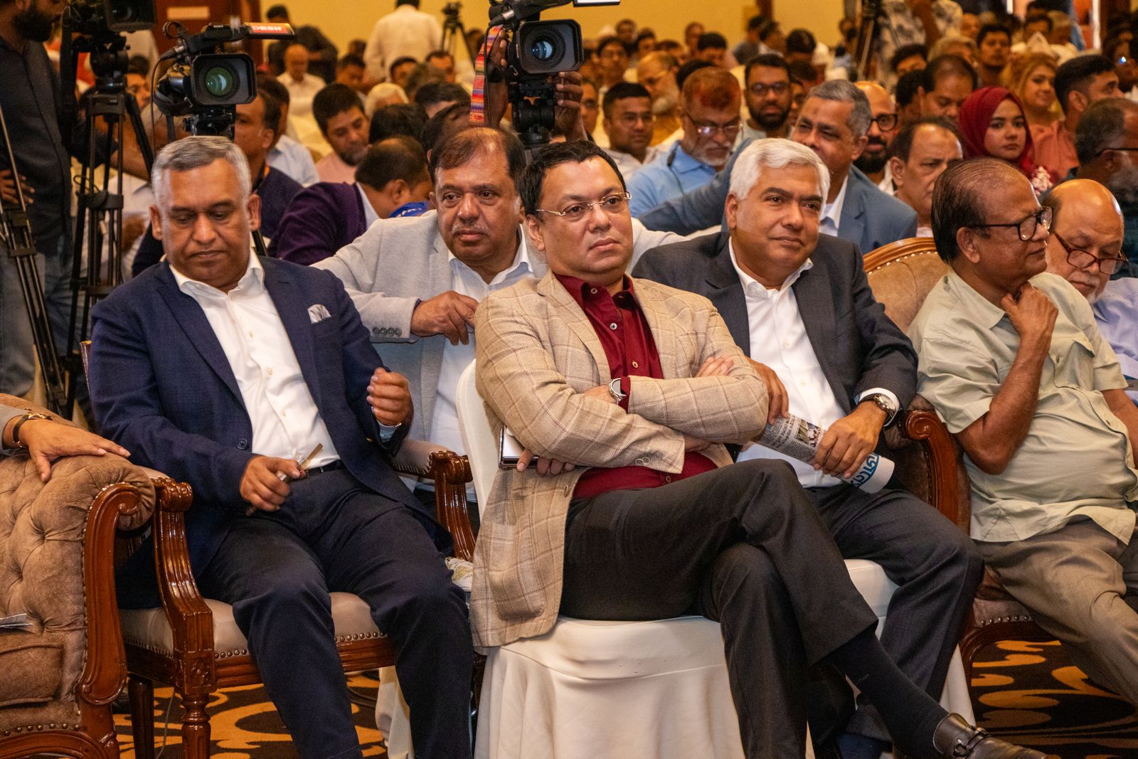সভায় বক্তব্য রাখেন ডিসিসিআইর সাবেক সভাপতি সবুর খান, এফবিসিসিআইর সাবেক সভাপতি জালাল উদ্দীন, এফবিসিসিআইর সাবেক পরিচালক আফজাল হোসেন, আব্দুল হাসান, আবদুল ওয়াহেদ, স্কয়ার গ্রুপের ব্যবস্থাপনা পরিচালক তপন চৌধুরী, এফবিসিসিআইর সাবেক সহ-সভাপতি হাবিবুল্লাহ ডন, বিজিএমইএ,’র সাবেক সভাপতি কাজী মনিরুজ্জামান, বিটিএমএর প্রেসিডেন্ট জনাব শওকত আজিজ রাসেল, প্রমুখ। সভায় দেশের সব খাতের প্রতিনিধিত্বকারী ব্যবসায়ী এবং আঞ্চলিক চেম্বারগুলোর ব্যবসায়ী নেতারা উপস্থিত ছিলেন।