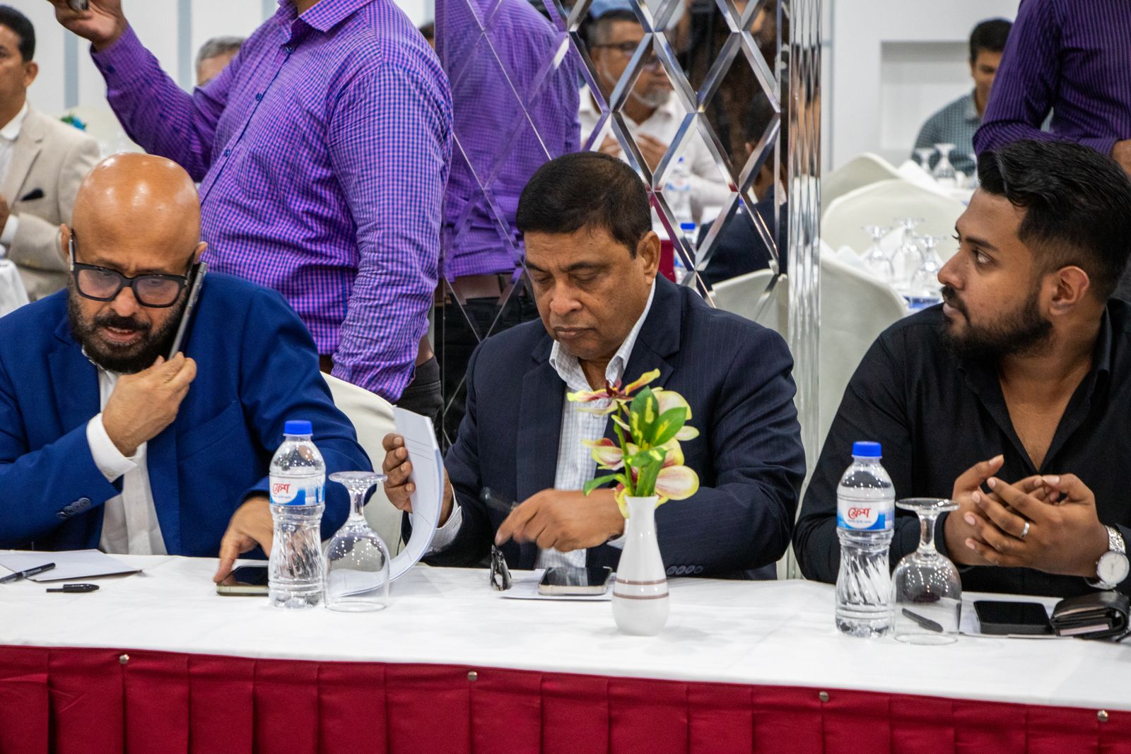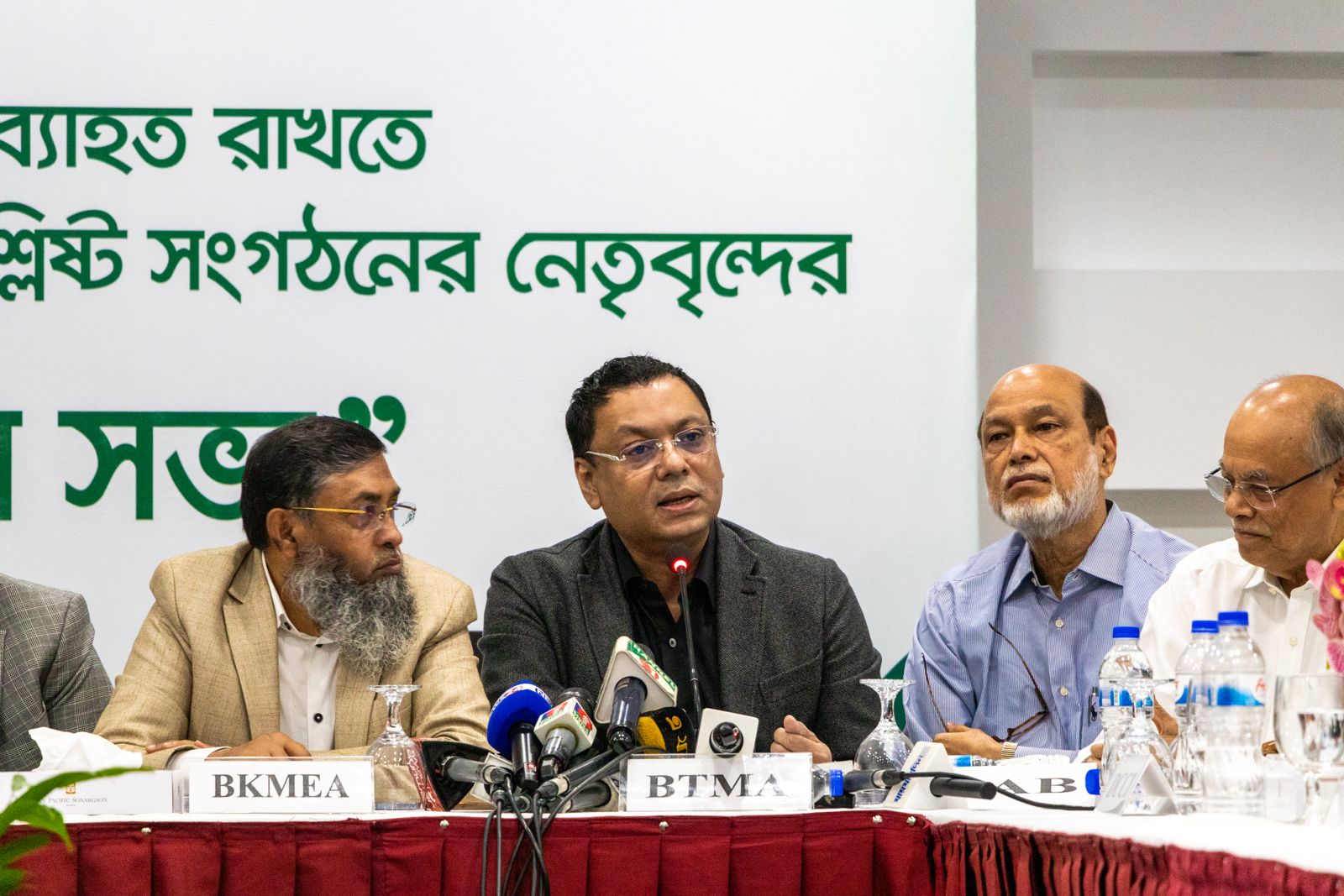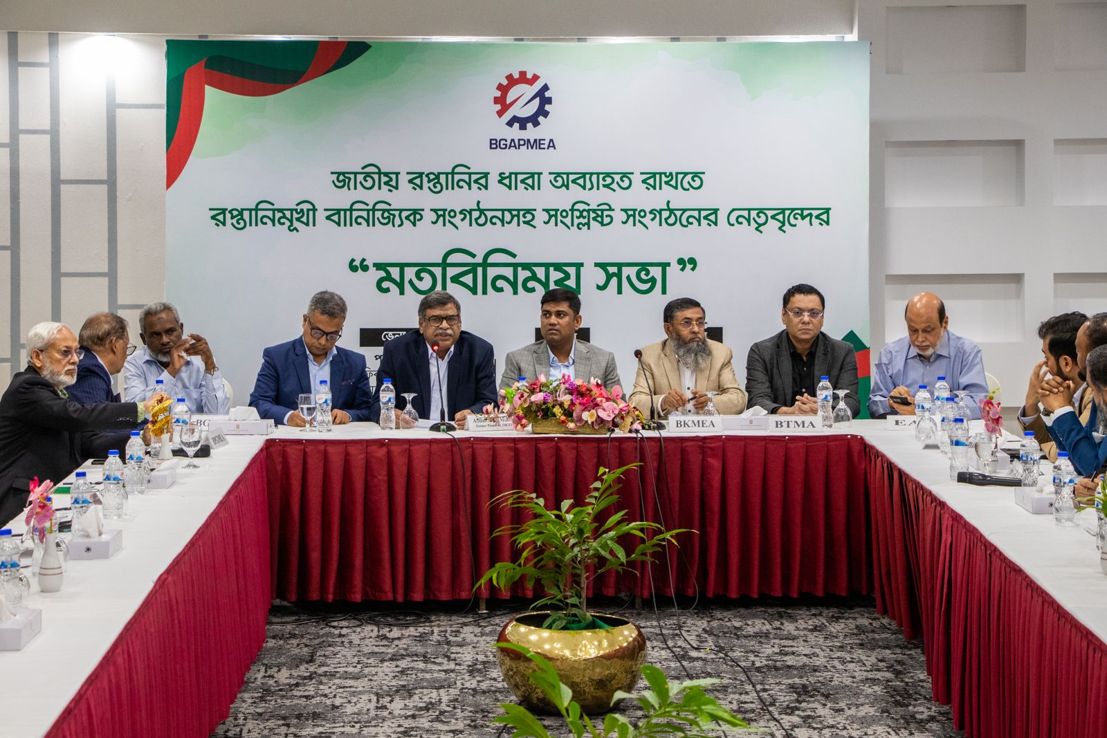 আজ ১২ আগস্ট ২০২৪ র্ইং বিজিএপিএমইএ এর উদ্যোগে জাতীয় রপ্তানির ধারা অব্যাহত রাখতে রপ্তানিমুখী বাণিজ্যিক সংগঠনের নেতৃবৃন্দের এক মতবিনিময় সভা ঢাকাস্থ সোনারগাঁও প্যান প্যাসিফিক হোটেলএ অনুষ্ঠিত হয়। সভায় প্রধান অতিথি হিসাবে উপস্থিত ছিলেন এফবিসিসিআই এর সাবেক সভাপতি জনাব আব্দুল আউয়াল মিন্টু। বিকেএমইএ এক্সিকিউটিভ প্রেসিডেন্ট জনাব মো. মোহাম্মদ হাতেম অনুষ্ঠানটি পরিচালনা করেন। সভায় বক্তব্য রাখেন বিটিএমএ এর প্রেসিডেন্ট জনাব শওকত আজিজ রাসেল, বিজিএপিএমইএ এর সভাপতি মি. শাহরিয়ার, বিজিএমইএ এর পরিচালক জনাব শামস মাহমুদ সহ দেশের শীর্ষ ব্যবসায়ীক নেতৃবৃন্দ ও বিভিন্ন সংগঠনের প্রতিনিধিবৃন্দ।