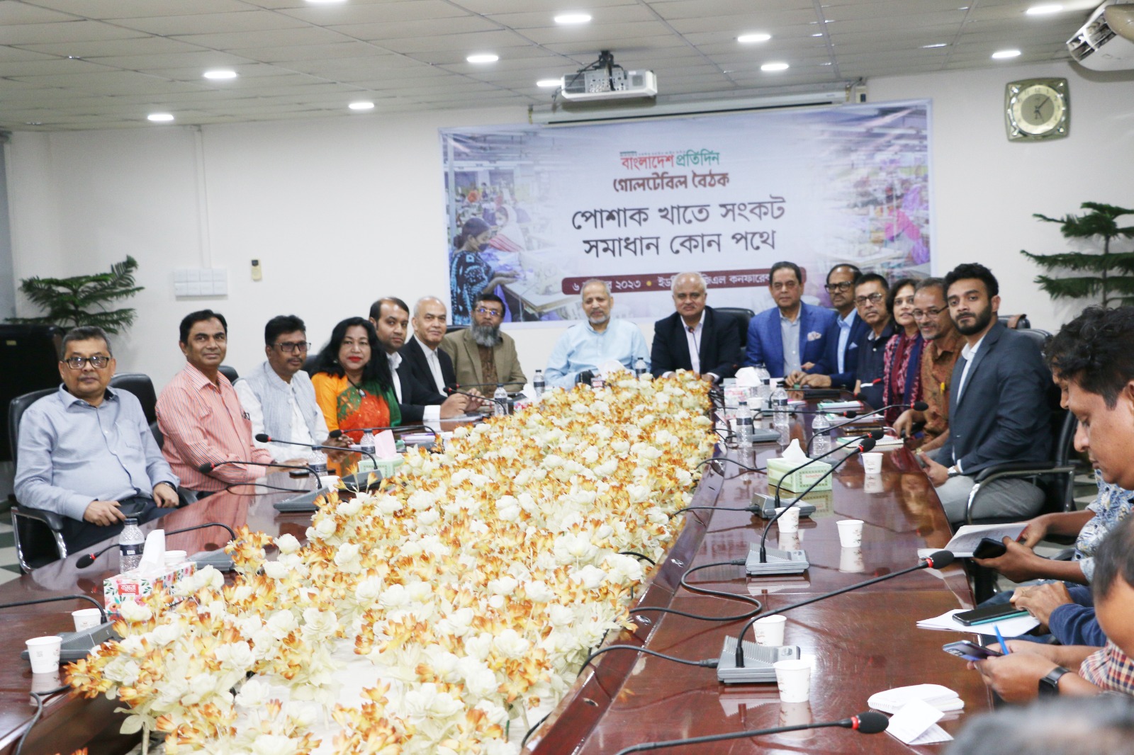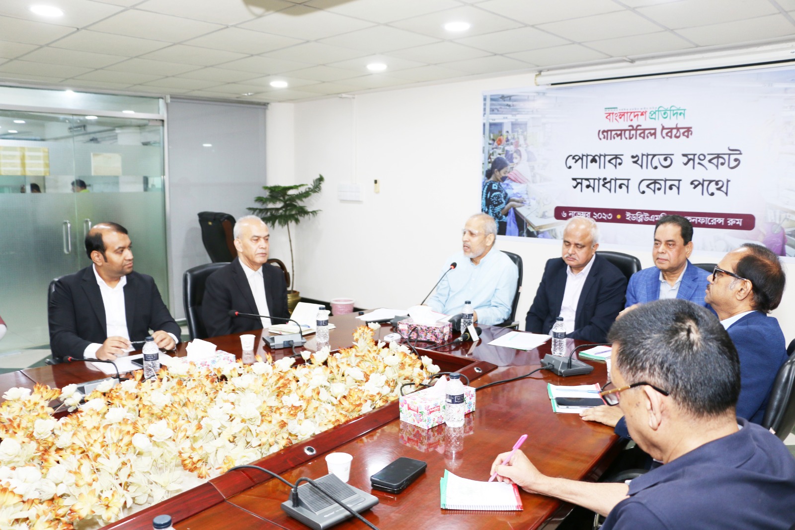 গতকাল ৬ সেপ্টেম্বর ২০২৩ তারিখ জাতীয় দৈনিক পত্রিকা বাংলাদেশ প্রতিদিন এর উদ্যোগে “পোশাক খাতে সংকট: সমাধান কোন পথে” শীর্ষক গোলটেবিল বৈঠক বাংলাদেশ প্রতিদিন এর প্রধান কার্যালয় বসুন্ধরা আবাসিক এলাকা বারিধারা, ঢাকায় অনুষ্ঠিত হয়। উক্ত সভায় সভাপতিত্ব করেন বাংলাদেশ প্রতিদিন এর সম্পাদক জনাব নঈম নিজাম।
