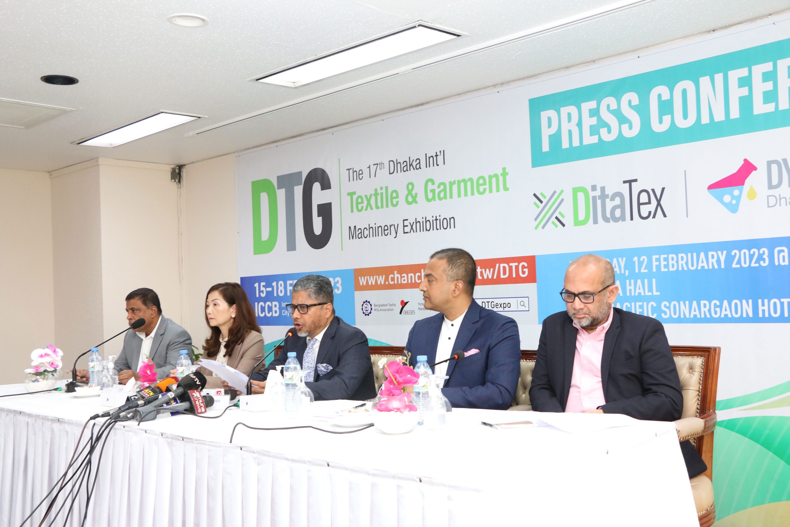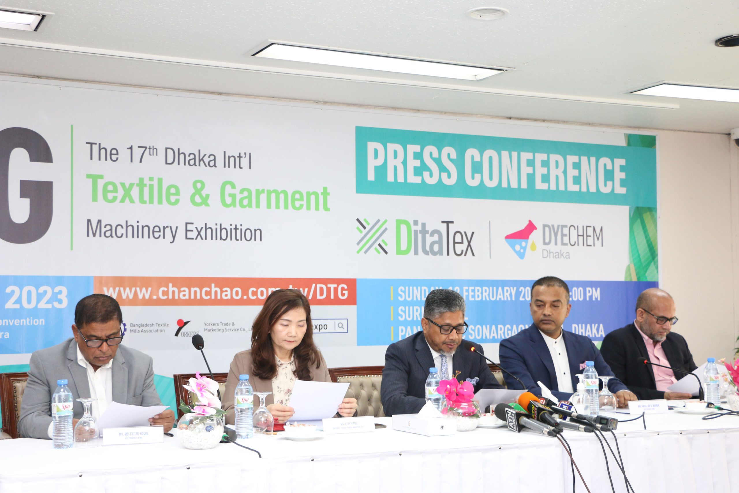 A Press Conference was held on 12.02.2023 at Pan Pacific Sonargaon Hotel, Dhaka on the occasion of holding The 17th Dhaka Int’l Textile & Garment Machinery Exhibition (DTG-2023) which will be held on 15-18, February 2023 at International Convention Center (ICCB), Dhaka. BTMA & Yorkers Trade & Marketing Service Co. Ltd, Hongkong & CEO, Chan Chao Int’l Co. Ltd. Taiwan are jointly going to organize the Exhibition. In this regard, Mr. Mohammad Ali Khokon, President BTMA briefed to the Print media regarding the Exhibition. Among others, Judy Wang, President, Yorkers Trade & Marketing Service Co. Ltd, Hongkong & CEO, Chan Chao Int’l Co. Ltd. Taiwan, Mr. Fazlul Hoque, Vice President, BTMA, Mr. Abdullah Al Mamun, Vice President BTMA, Members of the Board of Directors BTMA, and a good number of the representative from Print media were present in the said Press Conference.