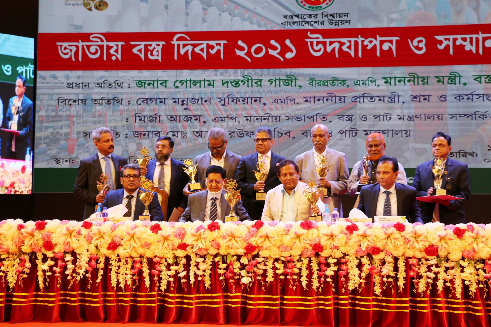 The event took place at the Osmani Memorial Auditorium of the capital. Seven organizations were honored with crests and certificates for their contribution in the textile sector. Honorable Minister for Textiles and Jute Golam Dastagir Gazi, Bir Protik MP handed over the crests and certificates. The seven organizations include the Bangladesh Textile Mills Association, Bangladesh Garment Manufacturers and Exporters Association, Bangladesh Knitwear Manufacturers and Exporters Association and Bangladesh Garment Buying House Association. The remaining three are Bangladesh Specialized Textile Mills & Powerloom Industries Association, Bangladesh Terry Towel & Linen Manufacturers and Exporters Association and Bangladesh National Weavers Association.