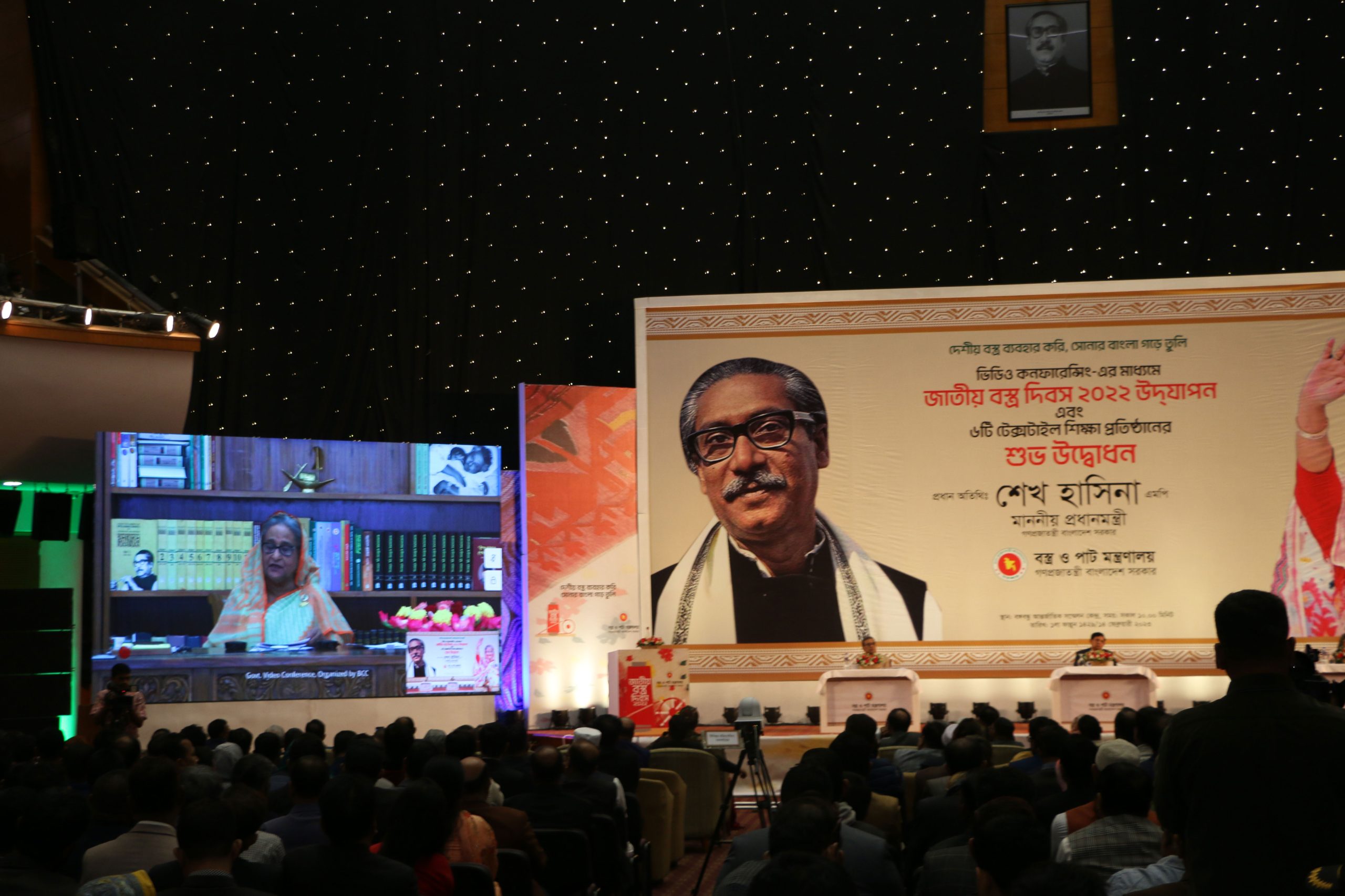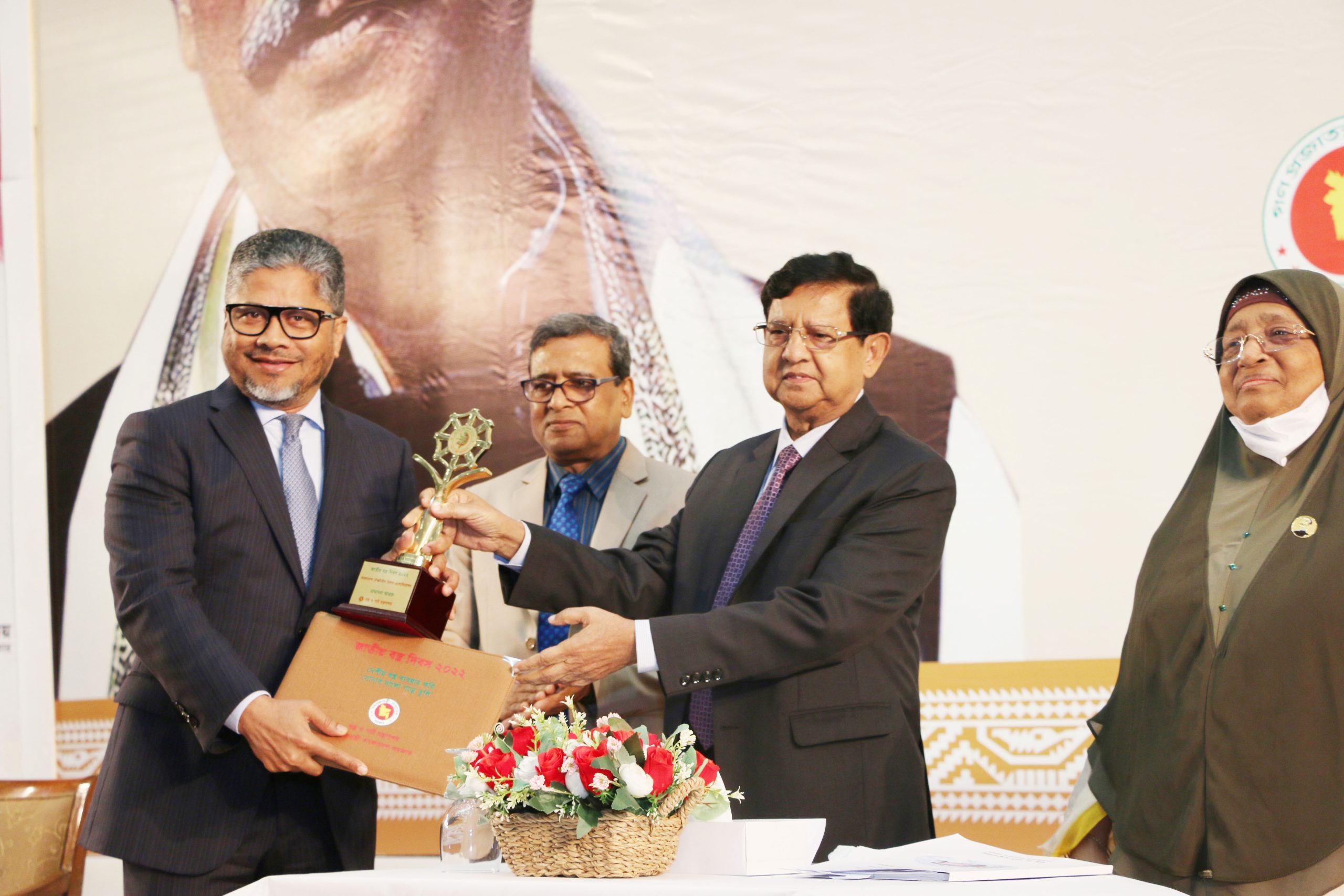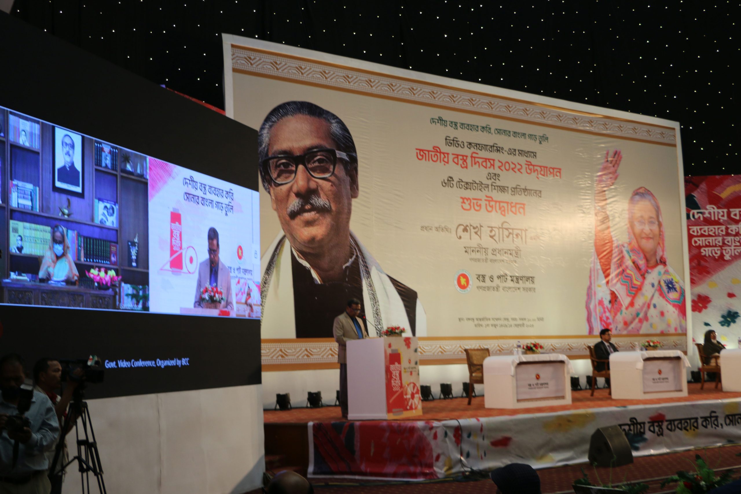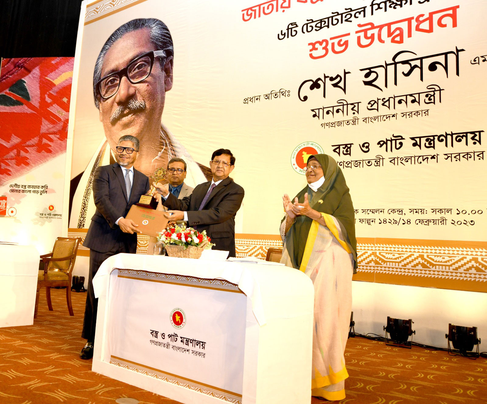 On the Occasion of National Textile Day 2022 held on 14th February 2023 at Bangabandhu International Conference Center (BICC) Mr. Mohammad Ali Khokon, President BTMA received a Trophy of Honor for Contribution to Textile Industry from Hon’ble Minister for Textile & Jute Mr. Golam Dastagir Gazi Birprotic MP. Our Honorable Prime Minister of the People’s Republic of Bangladesh, Sheikh Hasina, virtually inaugurated the program. Among others, Hon’ble State Minister of Labor & Employment, Begum Monnujan Sufian MP, Distinguished high officials of different Ministries, and Leaders of different Trade Associations were present on the occasion.