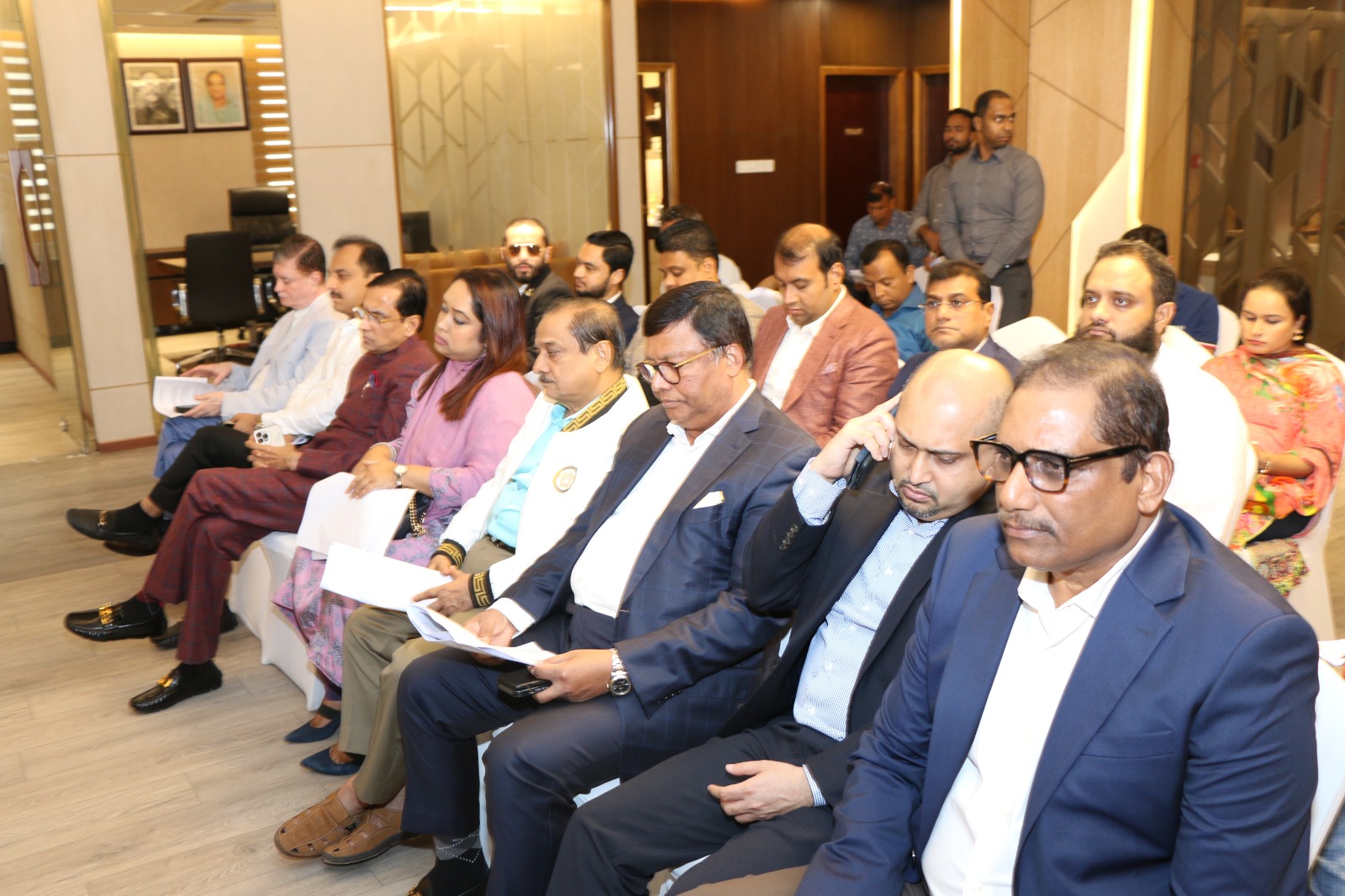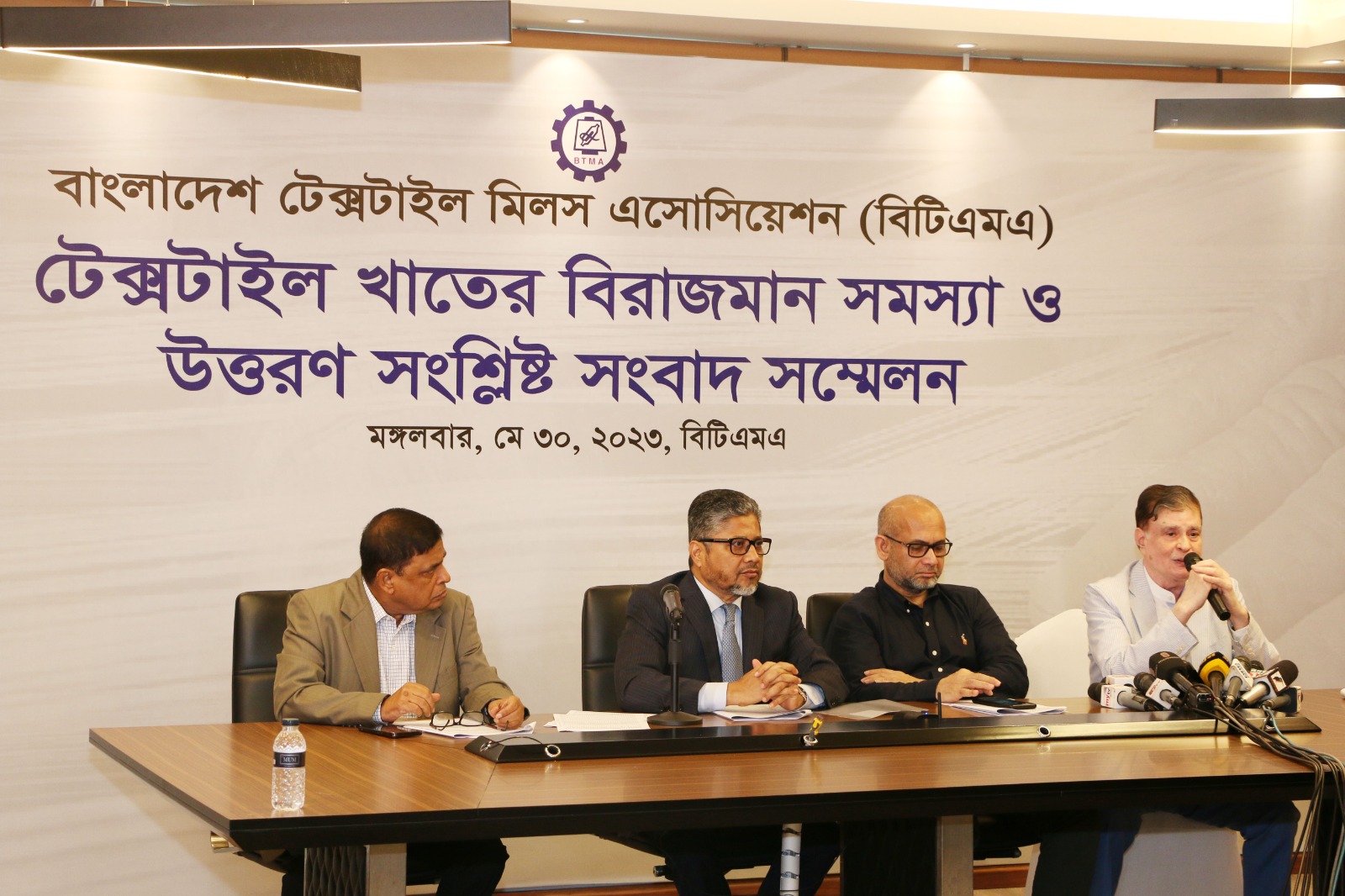 A Press Conference was held on 30th May, 2023 at BTMA Office. To brief the media personalities about the prevailing situation in the Primary Textile Sectors due to severe gas crisis, unauthorized marketing of yarn, fabrics and dress materials imported through bond. Reporters of Print & Electronic media’s covered the press conference. Mr. Mohammad Ali Khokon, President, BTMA briefs the media. A good no. of members of the B.O.Directors of BTMA attended the press conference namely Mr. Md. Fazlul Hoque, Vice-President, BTMA and respectively Mr. Md. Mosharaf Hossain, Mr. Md. Monir Hossain, Mr. Md. Saleudh Zaman Khan, Mr. M. Solaiman, Syed Enayet Kabir, Engr. Razeeb Haider, Mrs. Monalisa Mannan, Md. Abdullah Zubair, Mr.M.Hafizur Rahman Khan, Mr.Syed Nurul Islam, Md. Fayazur Rahman Bhuiyan, Md. Kamrul Hassan, Md. Azahar Khan, Directors, BTMA. Therefore other BTMA Members Mr. Khurshed Alam, Mr. Ruhul Amin and Mr. Salman A Rahman were also attended the meeting.