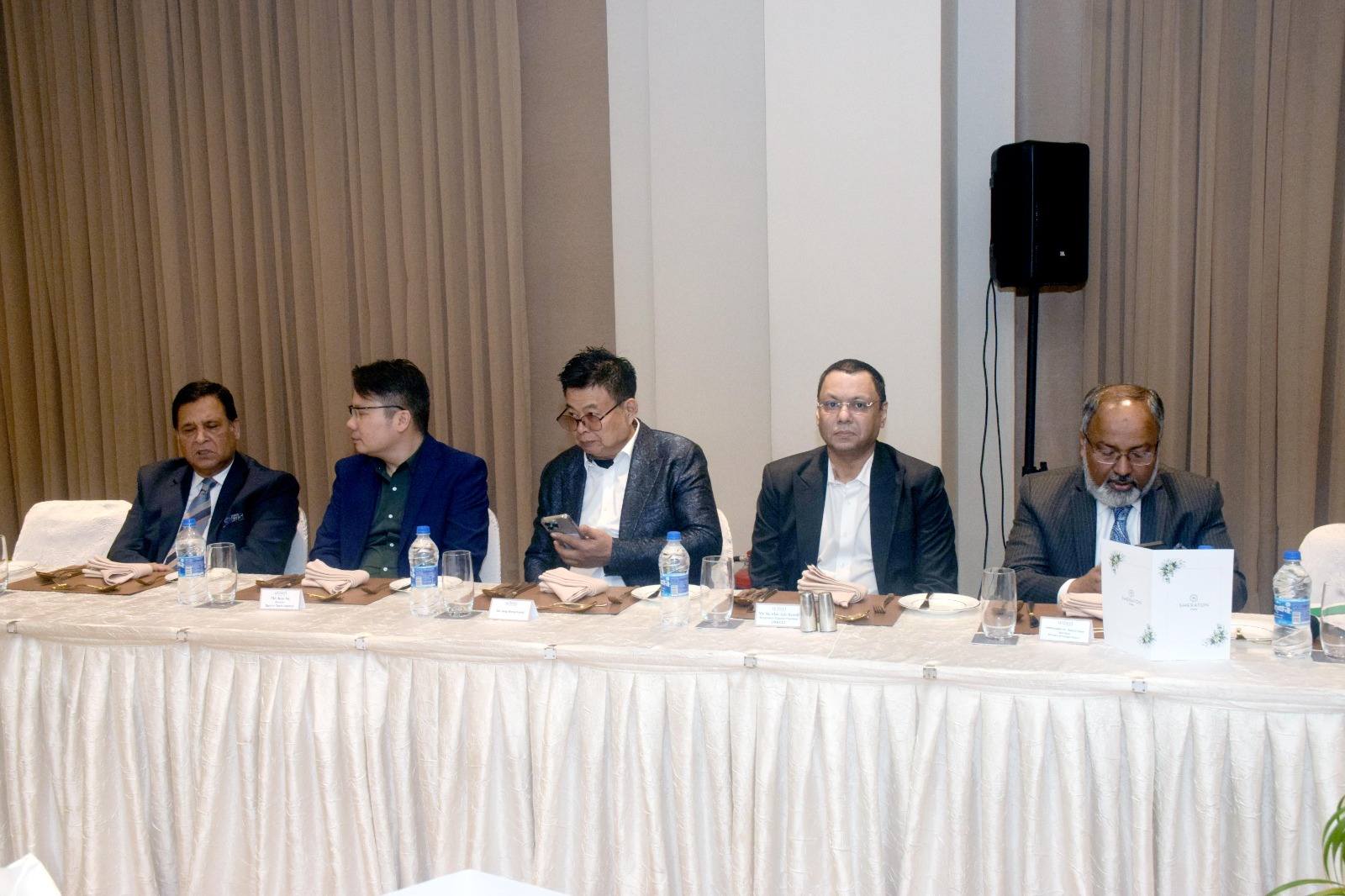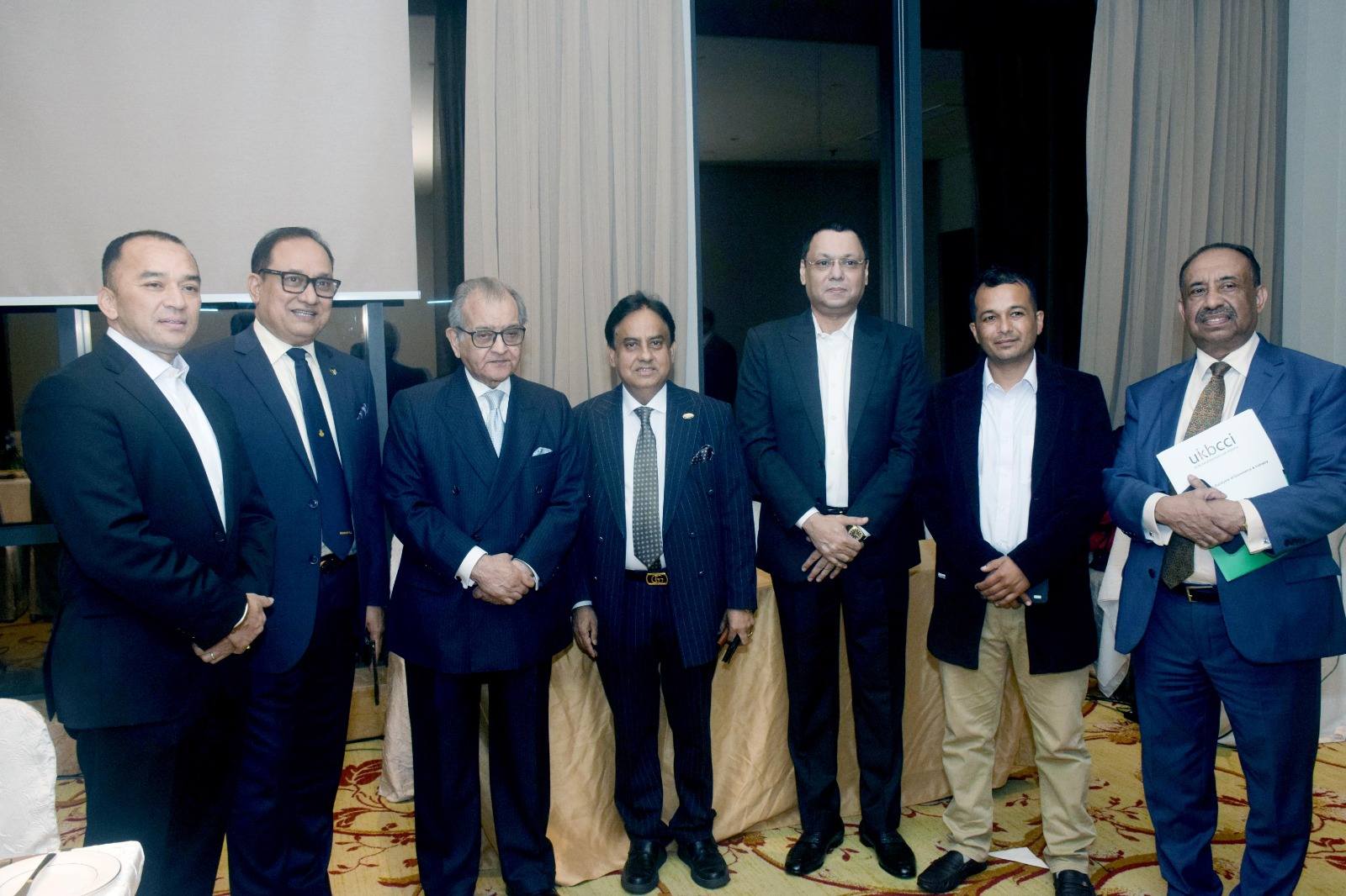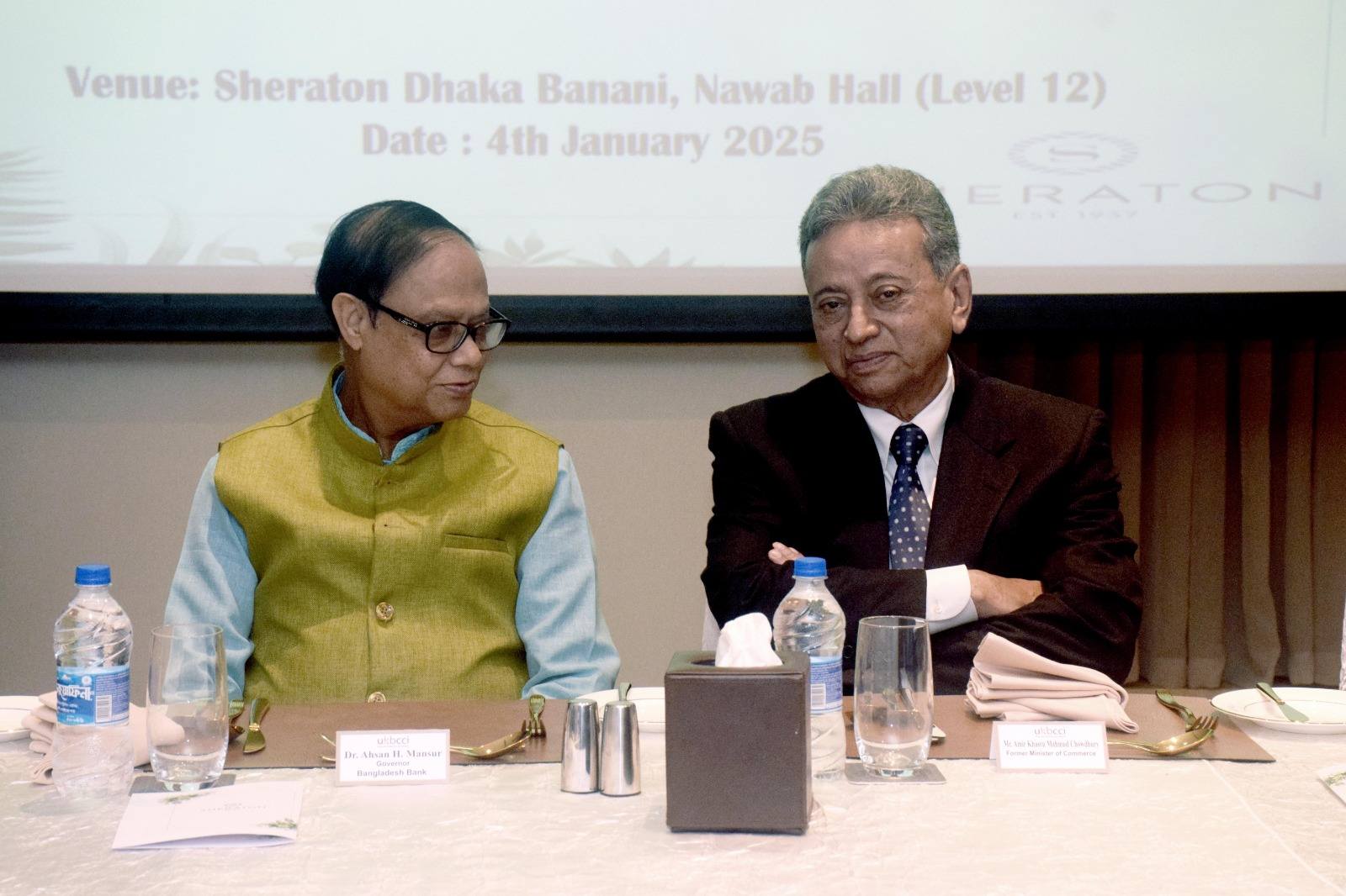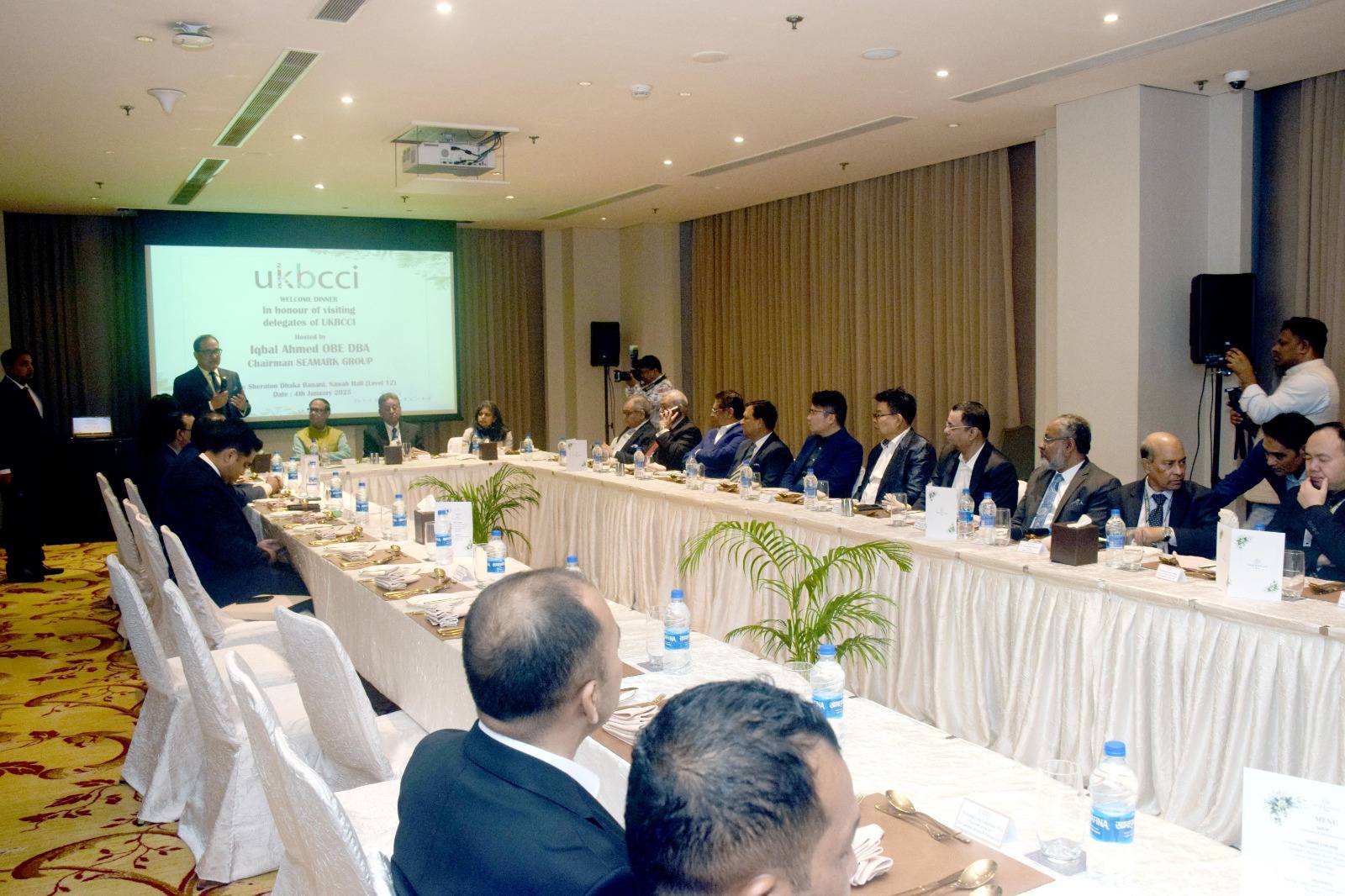 Welcome Dinner hosted by Mr. Iqbal Ahmed OBE, Chairman UKBCCI on the occasion of UKBCCI Trade Mission in Bangladesh on 4th January, 2025 at Hotel Sheraton, Banani, Dhaka. Mr. Showkat Aziz Russell, President BTMA & Bangladesh Regional President, UKBCCI attended the dinner. Mr. Amir Khasru Mahmud Chowdhury, former Commerce Minister & Member of Standing Committee BNP, Dr. Ahsan H. Mansur, Governor, Bangladesh Bank, Ms. Rupa Haq MP, House of Commons, UK Parliament and delegate members from UKBCCI Trade Mission to Bangladesh 2025 were among other invited guests.